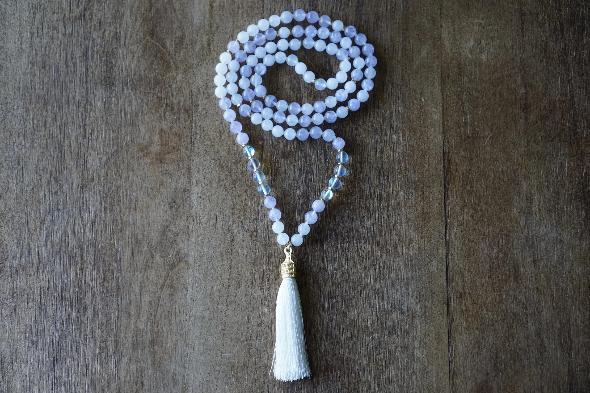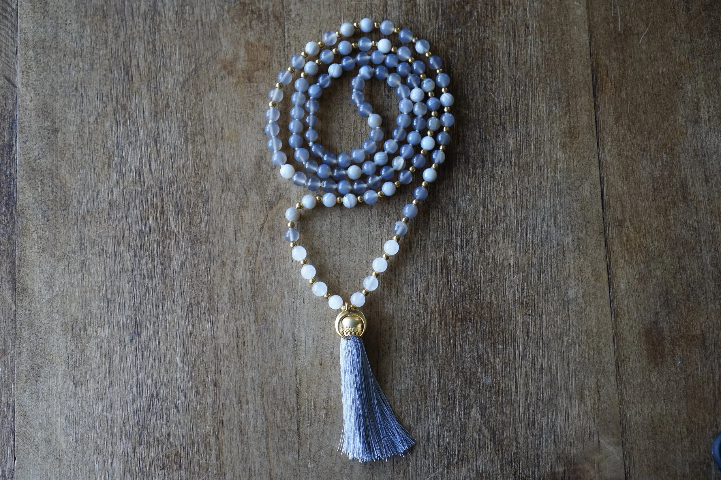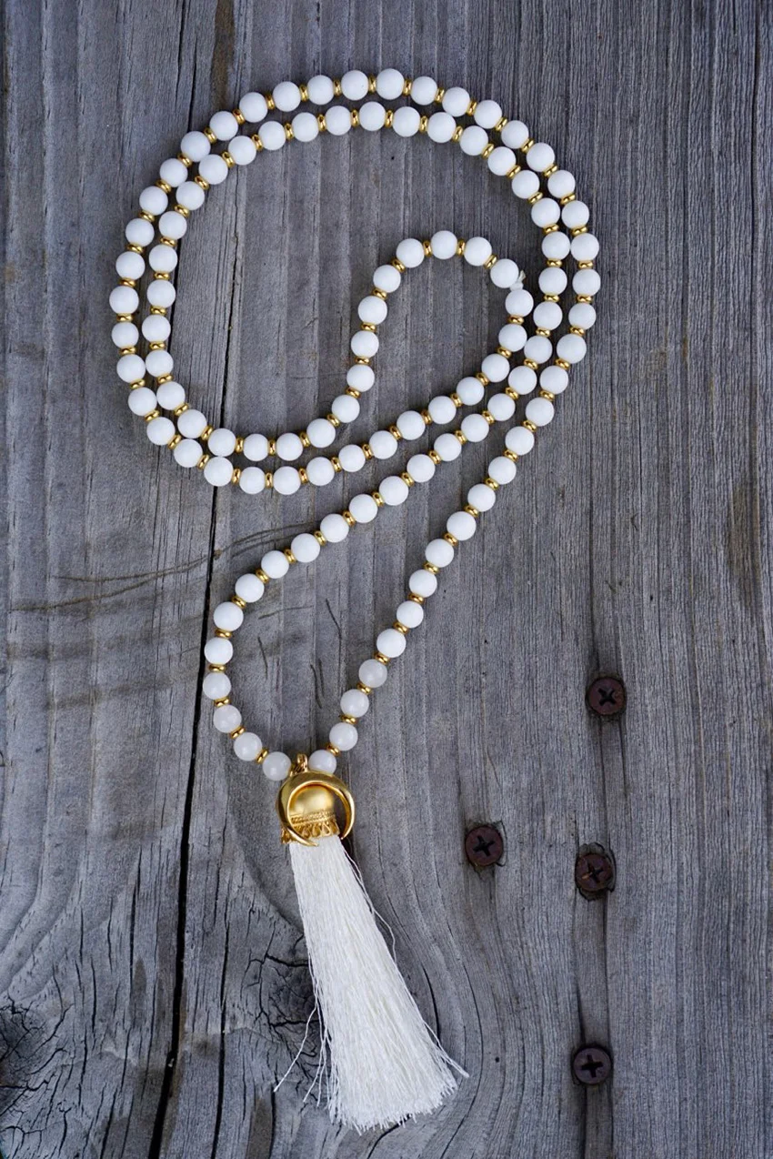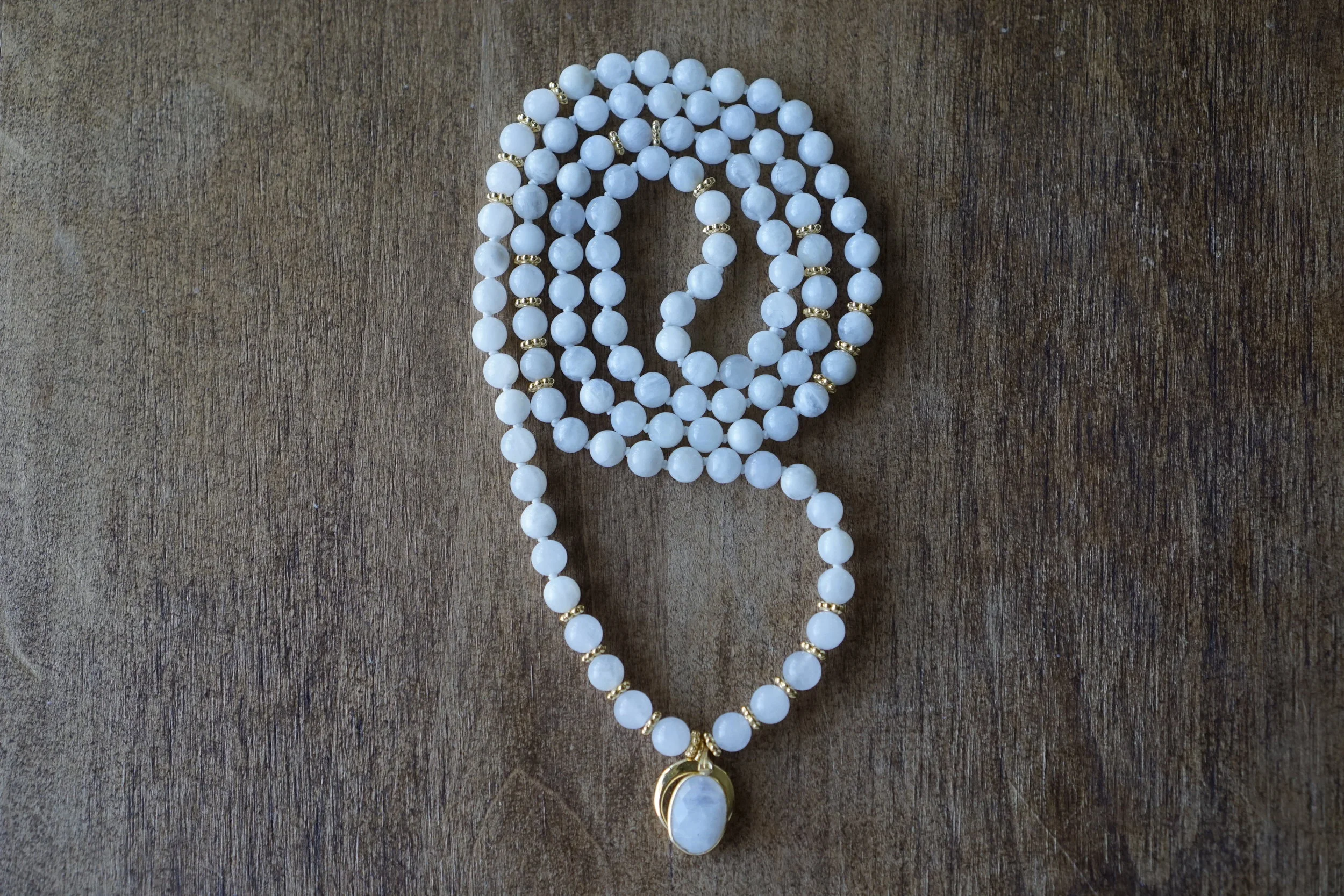 ☽☽Moon Malas☾☾ are handcrafted, unique malas made in southern California. Each mala is made with quality gemstones that are sourced from within the artist community. All Moon Malas are one of a kind and are purposefully designed with the individual qualities of the gemstones in mind. Crescent Moons are a feminine symbol, universally representing the rhythm of time as it embodies the cycle. The word “crescent” comes from the Latin term ceres meaning to “bring forth, create” and crescere, the Latin term for “grow, thrive”. We hope one of these 108 bead malas becomes a beautiful way to add intention and mindfulness into your life.